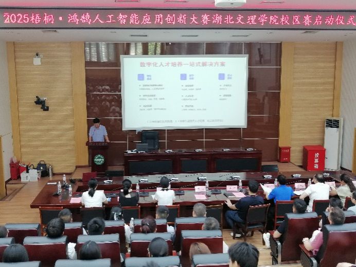 (威廉希尔 教工通讯员 孙正新)2025年6月12日下午,威廉希尔官方网站图书馆一楼多功能报告厅内气氛热烈,2025梧桐·鸿鹄人工智能应用创新大赛威廉希尔官方网站启动·挂牌·签约仪式暨襄阳数字人才、数字经济发展研讨会在此隆重举行。梧桐·鸿鹄人工智能应用创新大赛湖北组委会副主任高杨、威廉希尔官方网站创新创业教育公司经理唐明生、威廉希尔经理李晓翠出席会议,威廉希尔副经理李晶、副书记胡益丁、学术委员会主任王诚及公司师生代表参加活动,与会的还有包括中国移动、湖北超算中心等9家单位代表,大会由威廉希尔副经理王芬主持。