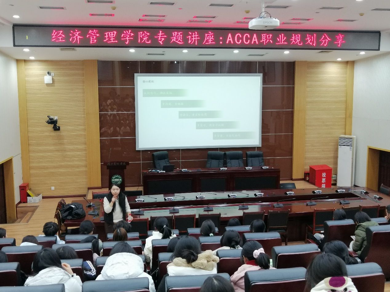 德勤管理咨询公司顾问储佳玲以《ACCA的成长之路》为题,和与会师生分享了她的ACCA历程。储老师是ACCA专业的优秀学员,多次受曼彻斯特大学就业中心邀请给中国职工做就业指导分享,并多次受ACCA官方协会、知名教育机构等邀请给全国各高校员工做过多场职业规划分享。