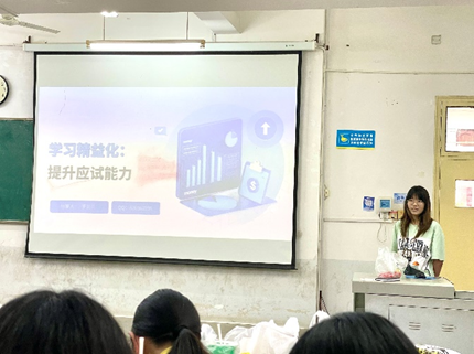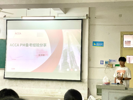 ACCA 学习经验分享环节,2023 级优秀学员代表张井香莲、罗贝贝、朱晨浩、崔泽祺依次登场。他们分别从科目备考策略、时间管理、应试技巧等维度展开系统讲解,为同学们带来了宝贵的学习经验。现场同学们认真聆听,积极提问,气氛热烈,互动频繁。